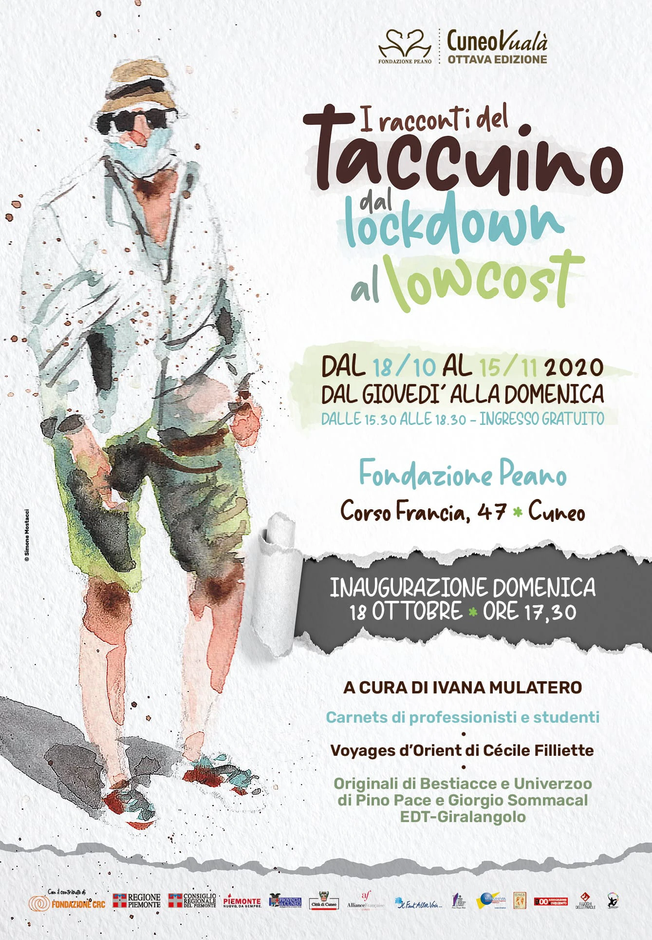Oggi mi chiama Ivana Mulatero, la curatrice di una rassegna chiamata “Cuneovualà”, e mi propone di esporre qualche disegno perché l’esposizione è dedicata agli Appunti di Viaggio. È perfetto per me!