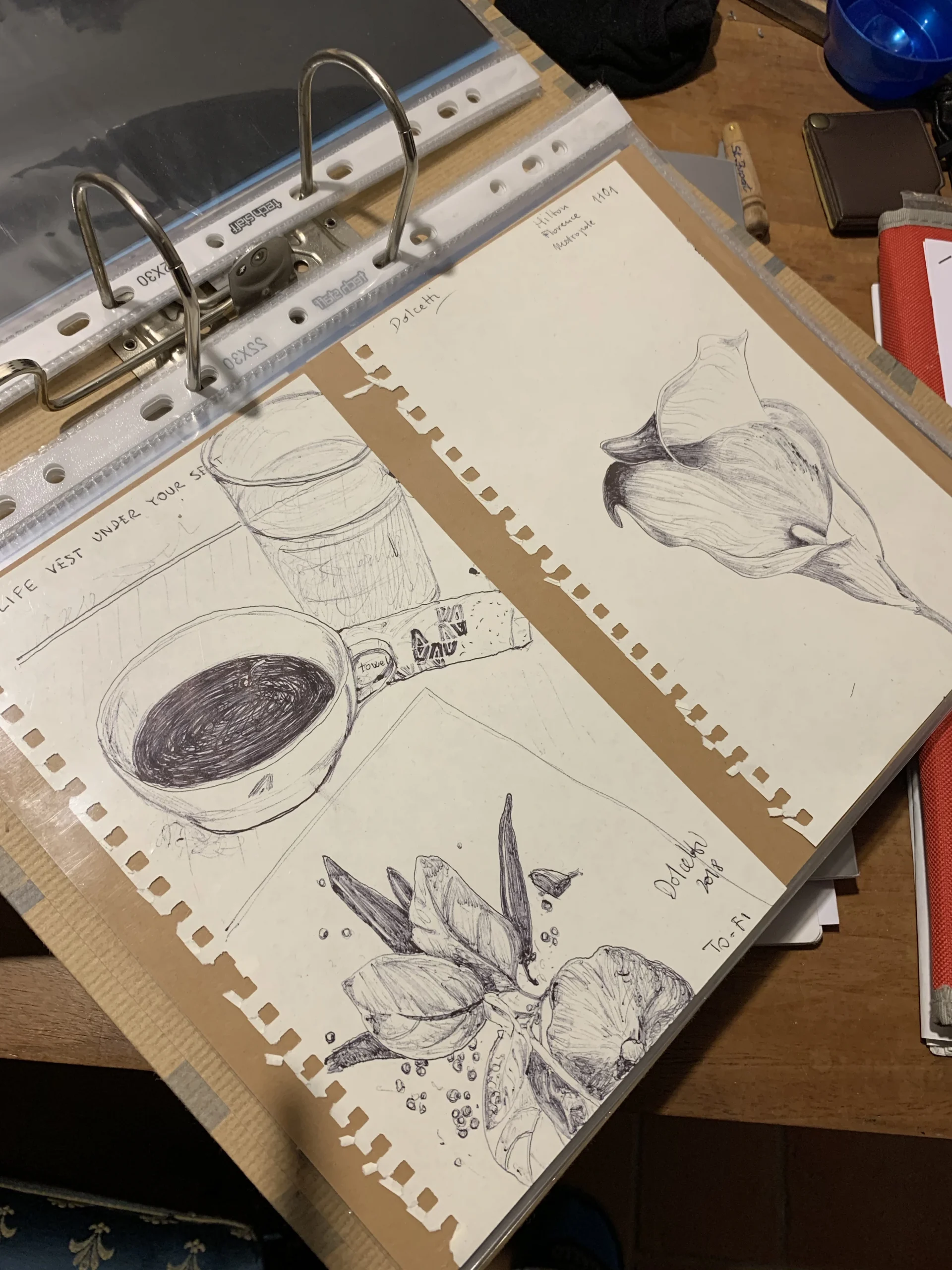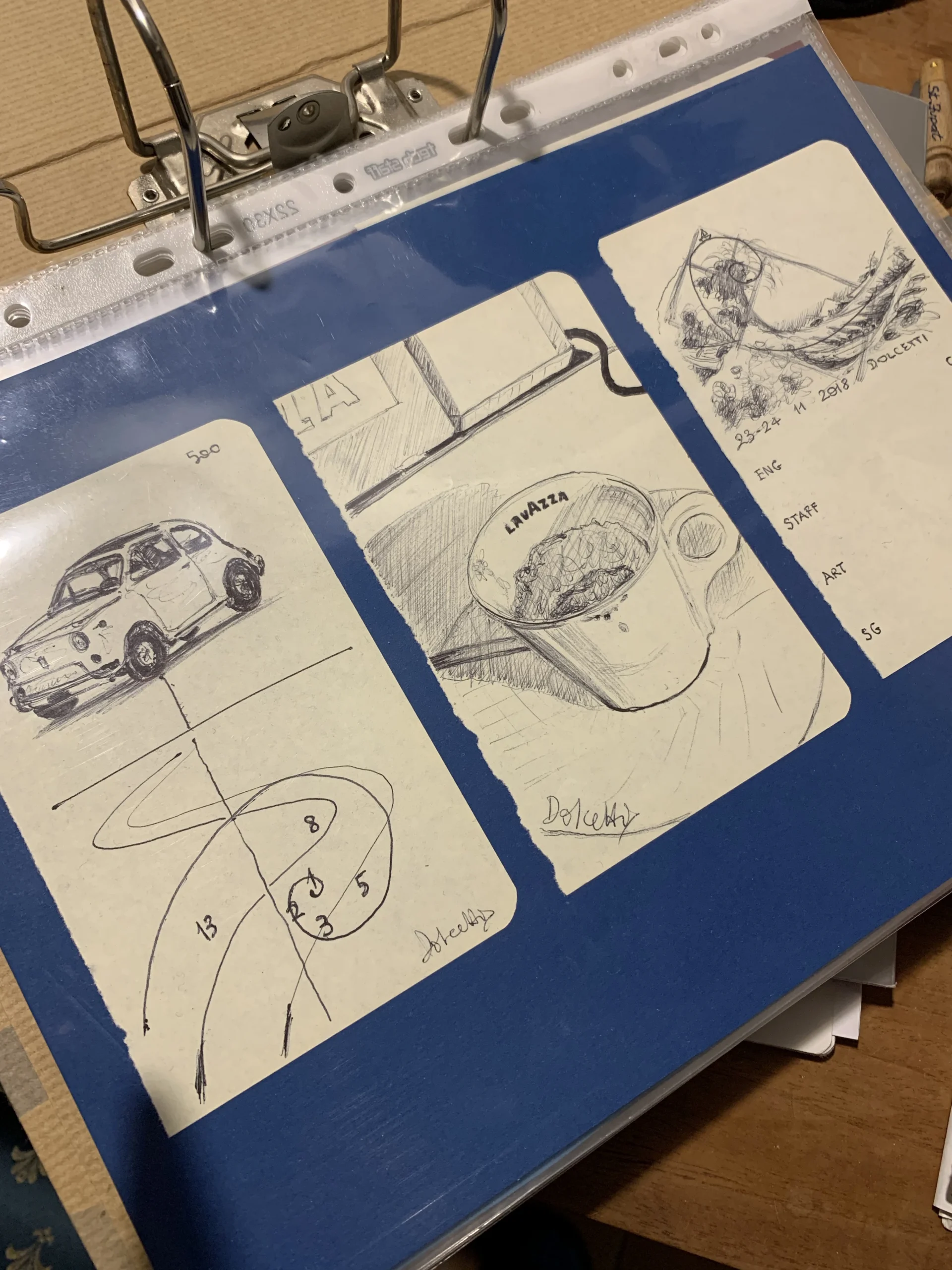 Accade che invio alcuni disegni di camere d’hotel ed altri disegni più piccoli (appunto strappati da qualche quaderno di viaggio). La scelta è caduta su tre disegni di camere d’hotel: Roma, Berlino e Bergamo…