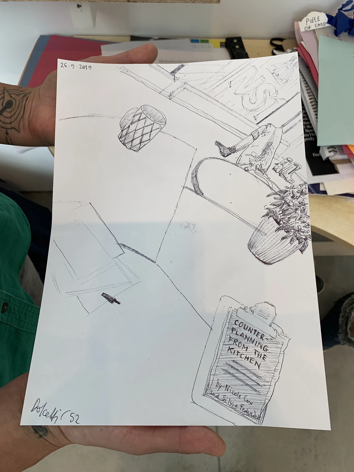 Entro invece a curiosare alla John Hansard Gallery e mi trovo dentro ad una cucina improvvisata. Faccio subito un disegno che lascerò appeso alla bacheca. Intorno al tavolo capisco che a turno si legge qualcosa e quando tocca a me, mi scuso per il mio inglese ma leggo un pezzo di Perfect Day di Lou Reed.